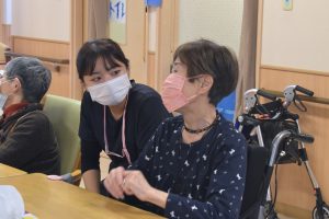 これまであまりお年寄りと接する機会がなかったという学生は「(ご利用者様から)昔話が聞けて勉強になった」と楽しんだ様子。