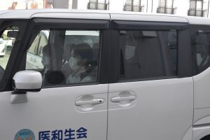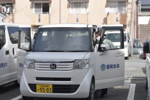 訪問同行の場面では、出発前に、複数の職員で持参薬を確認する様子を見学しました。
