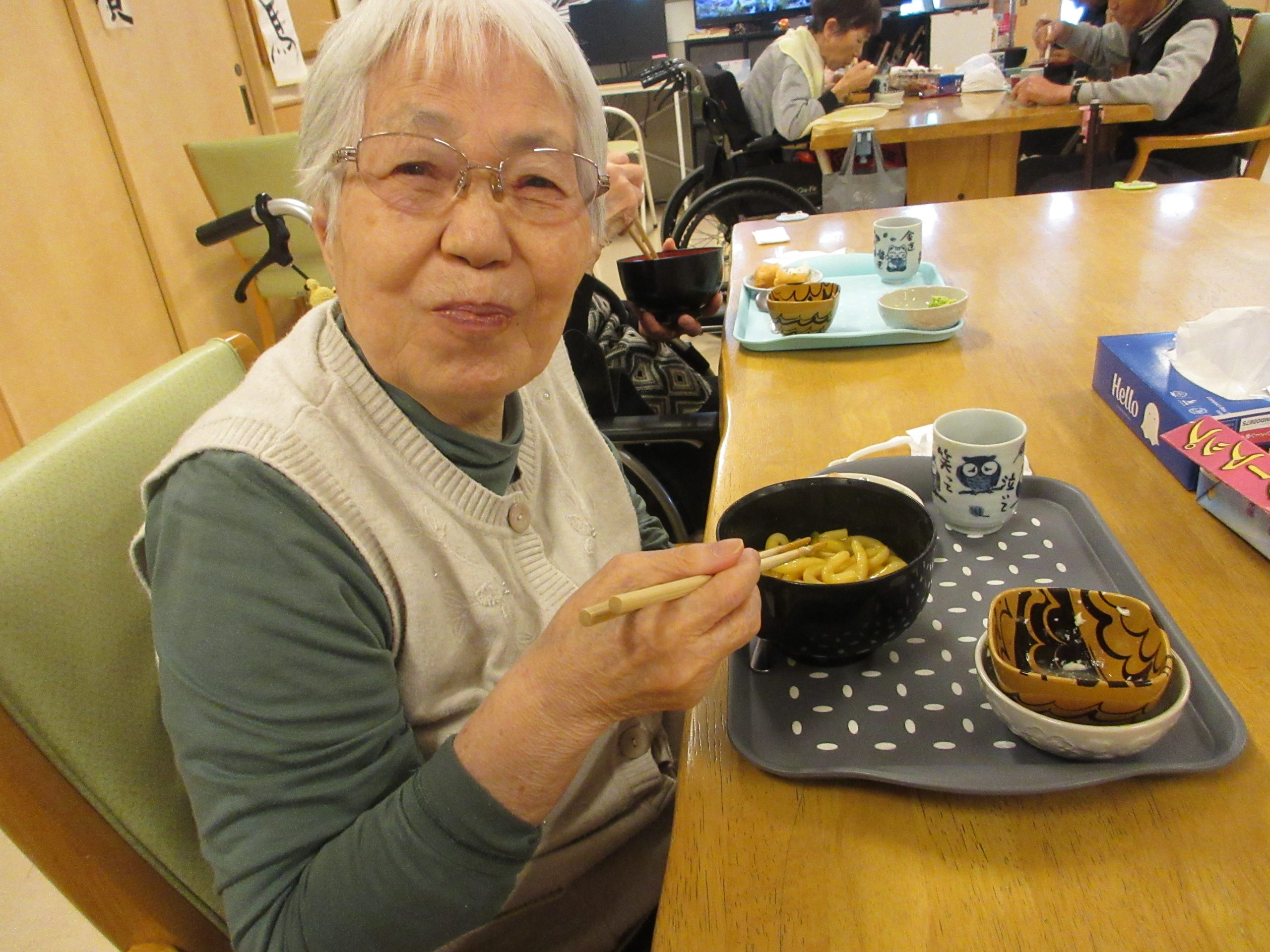 やがわせデイサービスでは、指導役から避難経路や避難の注意点などのアドバイスを受けた後、訓練を始めました。調理室で出火を確認した職員が、ホールにいる職員に「煙が出ています」と報告。初期消火班の職員が消火器を持って調理室に駆けつける間、誘導班の職員が、代表利用者4人を落ち着いて誘導。「足元に気を付けて」「ゆっくりね」と声を掛けながら外に避難し、救急箱や自動体外式除細動器(AED)を備えた救護班が避難者にけがの確認をした後、毛布を掛けて体を温めました。